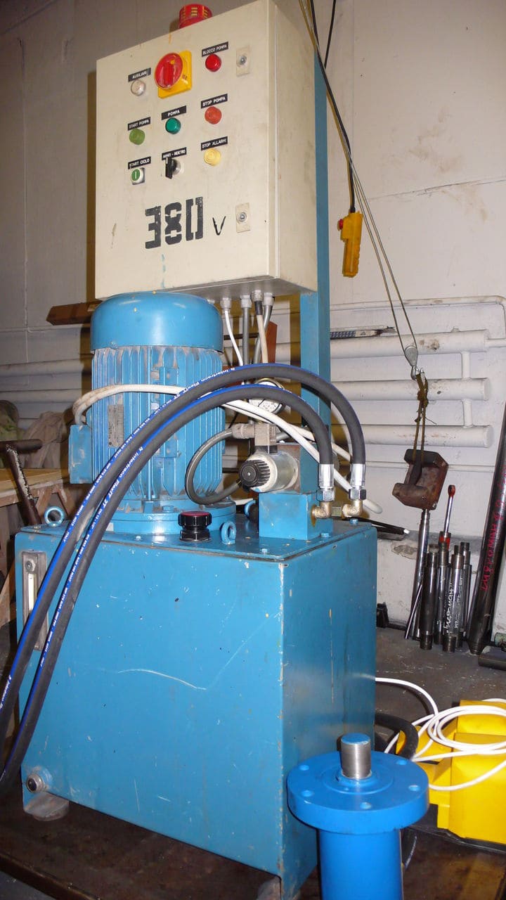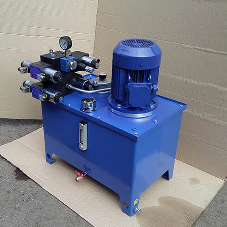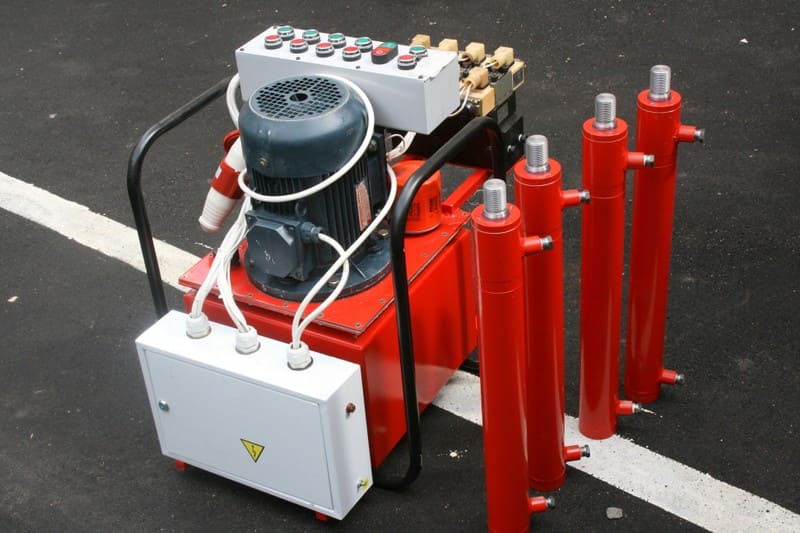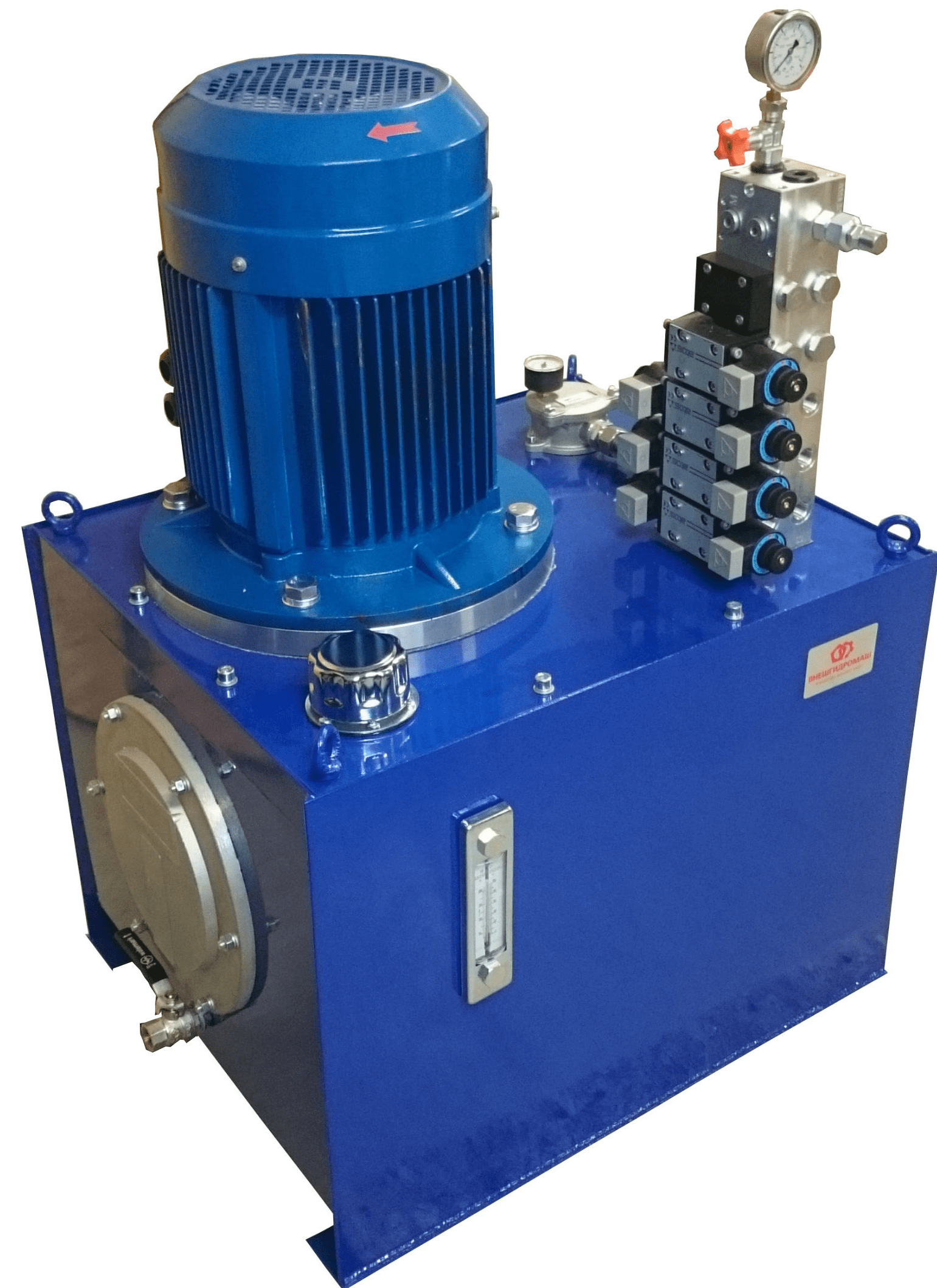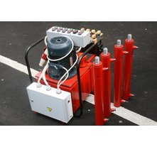 Гидростанция с гидравлическим цилиндром или несколькими цилиндрами – это комплект, состоящий из гидравлической насосной станции, рукавов высокого давления, элементов управления и распределения потока рабочей жидкости и исполнительного механизма с рабочим усилием до 200 тонн с ходом до 5 метров. Гидроцилиндр используется для совершения механической работы в виде прямолинейного перемещения нагрузки. Гидроцилиндр может создавать тяговое и толкающее усилие на штоке. Скорость перемещения штока определяется скоростью подачи гидростанции. Гидравлическая станция расчитана для подачи рабочей жидкости со скоростью от 1,6 до 50 л/мин, под давлением от 160 до 700 бар, емкость бака выбирается из диапазона от 10 до 250 литров в зависимости от объема и количества цилиндров.