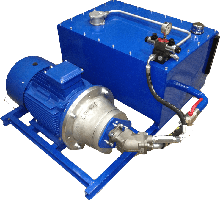Гидростанции изготавливаются с электрическим или дизельным приводом, позволяют запитывать все виды вибропогружателей и гидромолотов, предназначенных для дробления твердых пород, свай, забивки шпунта и способны подавать рабочую жидкость с большой производительностью под большим давлением. Конструкция спроектирована для интенсивной эксплуатации в тяжелых условиях. В спец. исполнении гидростанция может применяется для подачи масла и к молоту и к манипулятору, на который он устанавливается. Применение охлаждения рабочей жидкости полностью исключенает перегрев при работе.