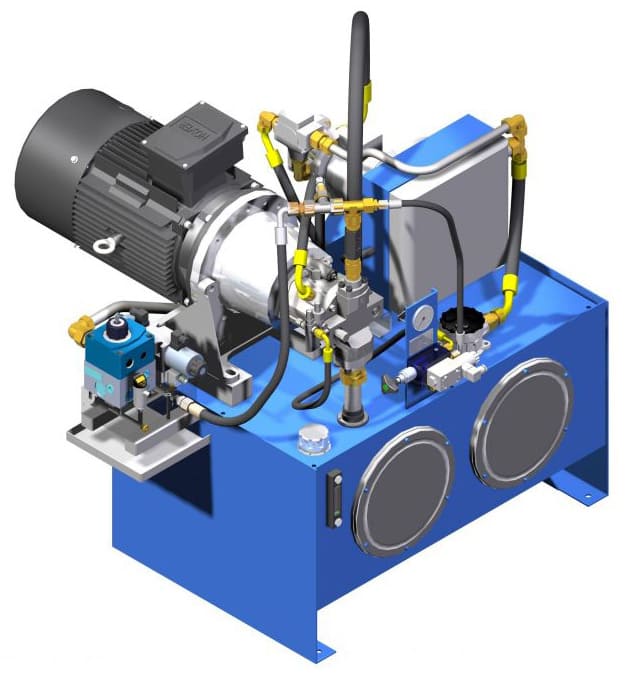4. По завершению этапа проектирования специалисты нашей компании изготавливают детали, необходимые для сборки оборудования. Основными элементами является маслобак, управляющая аппаратура, моторо-насосная группа. Насос и силовой агрегат, а также другие необходимые узлы приобретаются у мировых производителей.