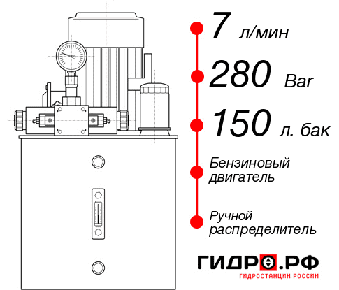 Маслостанция НБР-7И2815Т с давлением 280 бар и гидравлическим контуром 7 литров в минуту. Установлен бак на 150 л и бензиновый мотор. Цена по прайсу с доставкой до адреса в Екатеринбурге 181361 руб. Рекомендуемая комплетация: дополнительные краны на выходе, гидрозамок на выходных портах, контроль давления в выходных магистралях, вспомогательный ручной насос, обратный клапан на выходе.