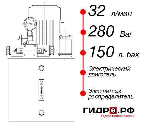 Гидростанция НЭЭ-32И2815Т с давлением 280 bar и гидравлическим контуром 32 л/мин. Установлен электрический мотор и бак на 150 л. Распределитель гидравлического потока э/магнитный. Стоимость с доставкой до Вашего цеха в Екатеринбурге 227625 руб. Рекомендуем дооснастить: электрошкаф, складывающиеся ручки для переноса, взрывозащитное управление, дискретное реле давления, дополнительный дренажный слив.