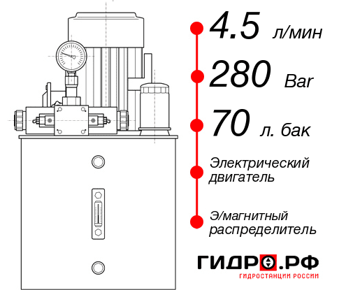 Маслостанция НЭЭ-4,5И287Т с давлением 280 кг/см2 и производительностью 4.5 л/м. Установлен электрический мотор и масляный бак на 70 литров. Срок производства до 1 рабочих дн. Цена по прайсу с доставкой до Вашего цеха в Екатеринбурге 93960 руб. Популярные допопции: контроль давления в выходных магистралях, индикатор наработки, насос ручной (дублирующий), автономный ручной насос.